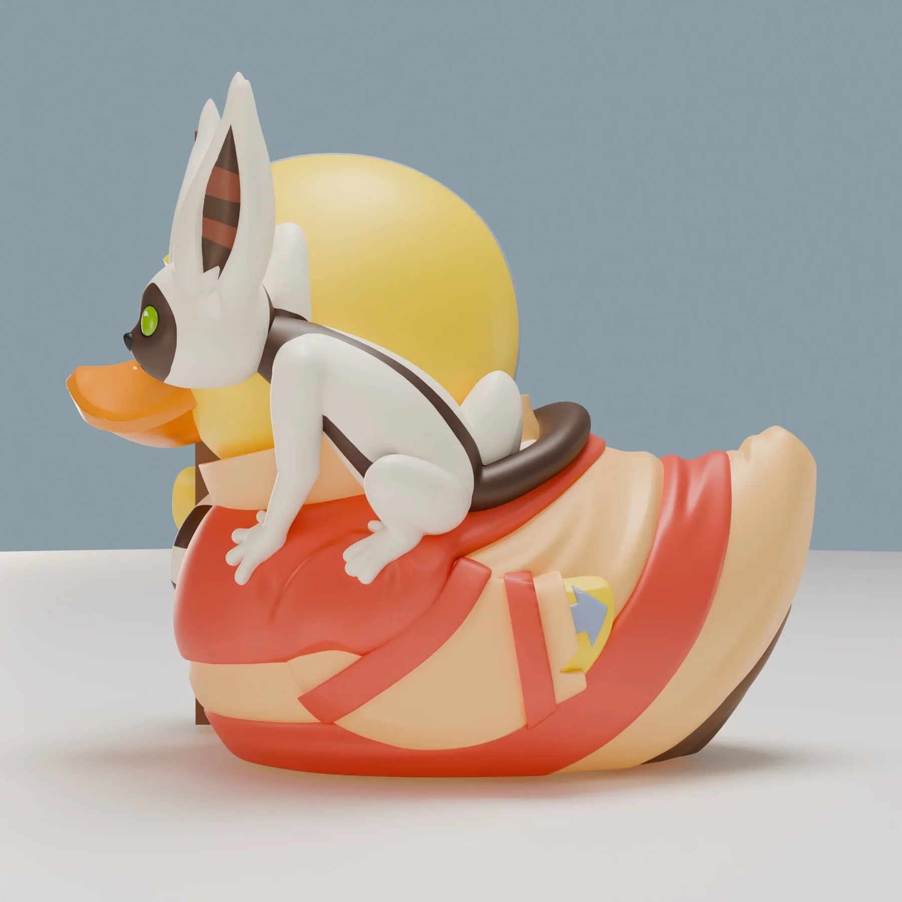 This cheerful duck perfectly captures Aang’s signature appearance, complete with his bright yellow and orange Air Nomad outfit. The detailing highlights the layered robes and sash, carefully sculpted to reflect his traditional attire. Most recognisable of all is the bold blue arrow tattoo sweeping across his bald head — a striking feature that instantly marks him as the Avatar.