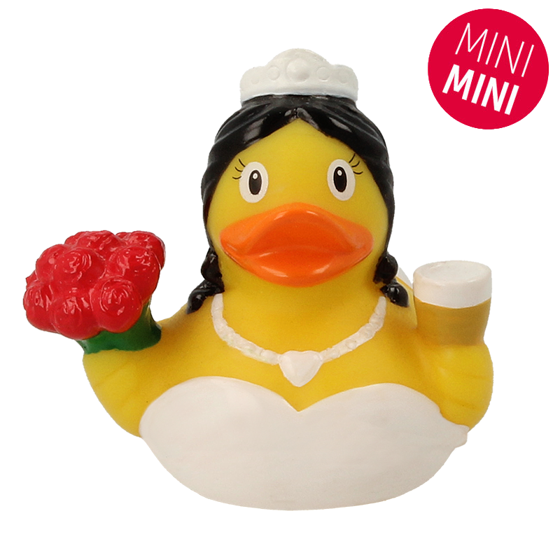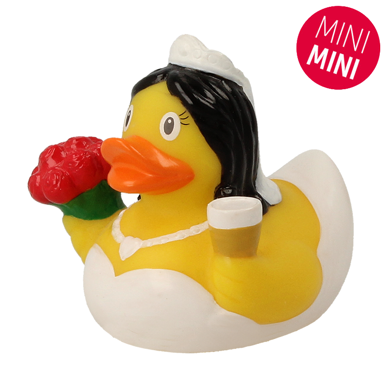 Say “I do” to the Mini Bride Rubber Duck — a tiny treasure full of love and charm! Dressed in a classic white gown with delicate detailing, this adorable mini duck holds a beautiful bunch of vibrant red roses, ready to waddle down the aisle in style. With her sweet expression and elegant bridal look, she’s the perfect keepsake for weddings, bridal showers, or anyone who loves a happily-ever-after in duck form.