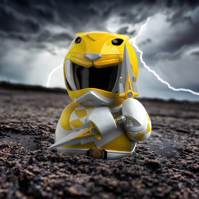 Go go Power Rangers! The TUBBZ First Edition Yellow Power Ranger quacks into action in dazzling yellow, capturing the bold spirit of the Sabre-Tooth Tiger Ranger. Dressed in her detailed Power Ranger suit and helmet, she’s ready for battle with her signature Power Daggers in hand. This officially licensed collectible combines classic 90s nostalgia with TUBBZ’s signature ducky charm. Presented in a collector’s display bathtub box, this First Edition figure is a must-have for any Mighty Morphin Power Rangers fan or dedicated TUBBZ enthusiast.